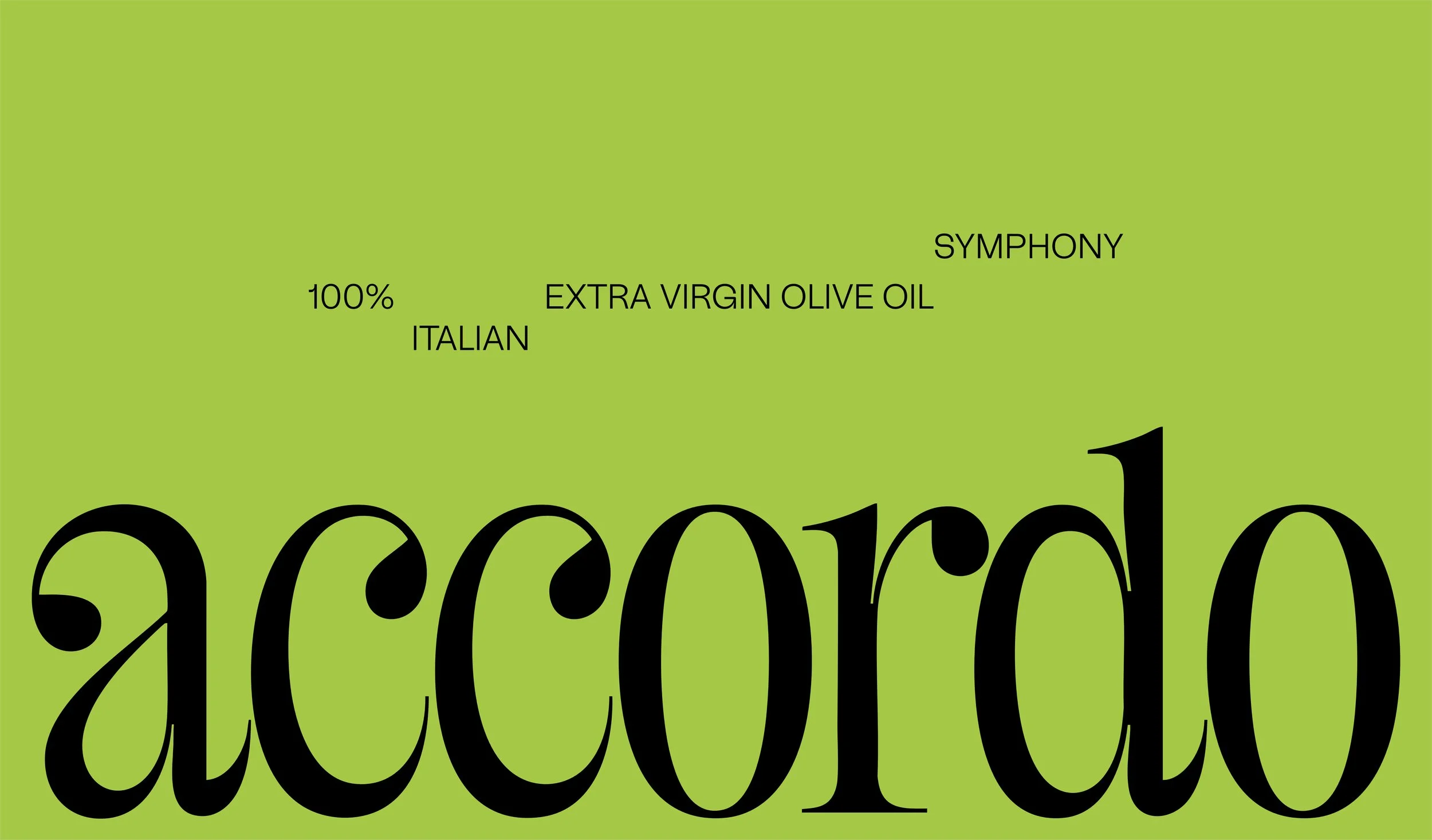 “Accordo è una proposta di branding per un olio extra vergine di oliva premium italiano, estratto a freddo da diverse varietà di olive italiane. Il nome “Accordo” (che in italiano ha molteplici significati, incluso quello dell’accordo musicale) è inteso come metafora dell’unione delle diverse varietà di olive usate.